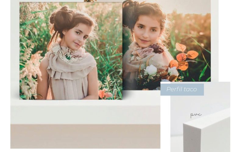 Taco en pvc con esquinas rectas con perfil 18mm, impresión por las dos caras y esa disponible en diferentes tamaños siendo los tamaños 15x15, 13x18 los más ultilizados, la impresión se hace en papel Silk de alta calidad y resistencia. Incluye bolsa de organza adaptada a su medida.