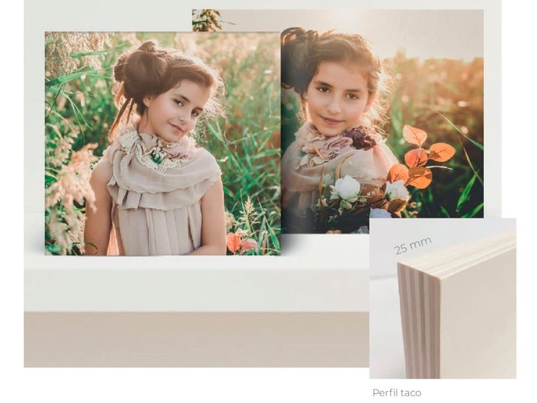 Taco en madera contrachpada con esquinas rectas con perfil 18mm, impresión por las dos caras y esa disponible en diferentes tamaños siendo los tamaño 15x15 y 13x18 los más ultilizados, la impresión se hace en papel Silk de alta calidad y resistencia. Incluye bolsa de organza adaptada a su medida.