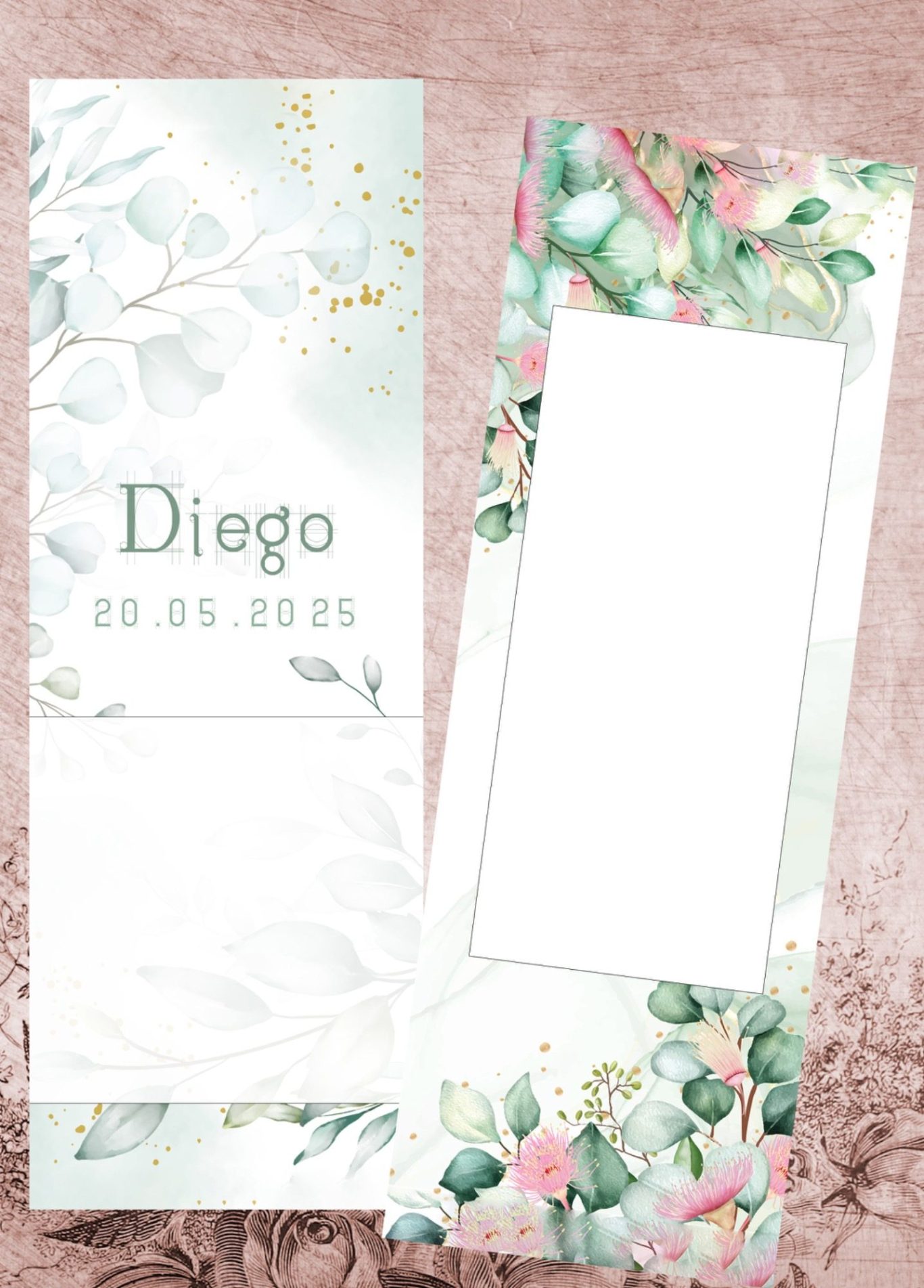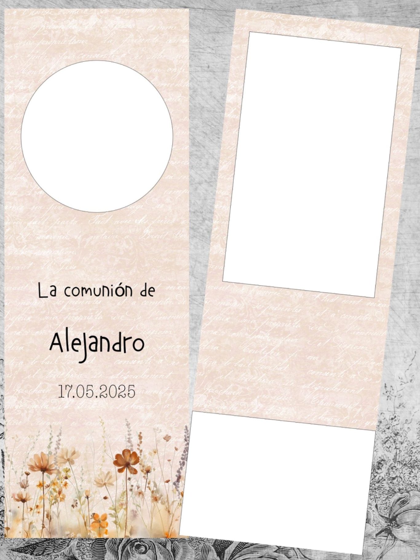 Este tipo de acabados "al aire", encajan con todo tipo de decoraciones ya que no esta limitado por un diseño y color específico, tienen la posibilidad de imprimir por las dos caras lo q permite mas posibilidades en la elección de la foto, adicionalmente en el caso de que l@s niñ@s tengan hermanos es posible incluirlo en el recuerdo sin necesidad de que tengan mas presencia de lo debido.